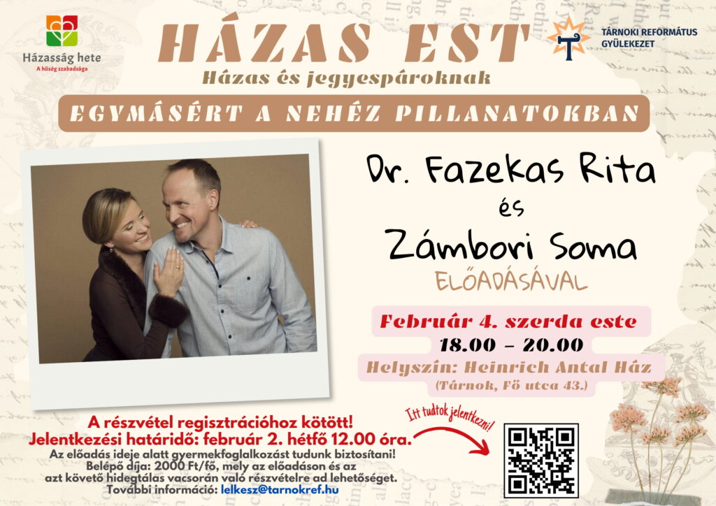 Szeretettel meghívunk, 2026. február 4-én este 18.00 órától megrendezésre kerülő házas estünkre.